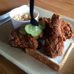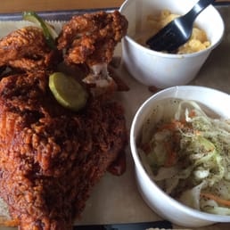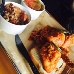 I don't give 5 often, but this spot right here.....I thoroughly enjoyed the spicy chicken dark... truly balanced in seasons that gave not just hot sauce but a mixture of seasoning that left your palette wanting more. Yeeeees! The crunch on the skin, the moist bites not dry..freshly made, we all had that chicken that stayed too long in grease. This was not that. I grabbed and ran after driving 5 hours to get here but it was definitely an Ill be back moment. Ok the ONLY issue I had was, the bread, the oil from this chicken must have overwhelmed the bread. Hard to explain. I guess I will say the bread was to oily??. Is that a thang?? Lolol Not enough to keep me away!